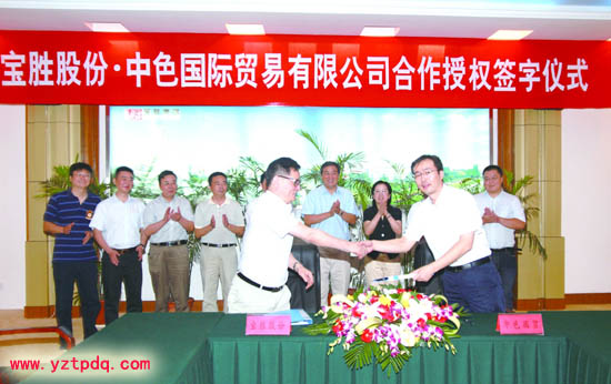 8月7日上午,寶勝股份和中色國(guó)際貿(mào)易有限公司合作授權(quán)簽字儀式在寶勝集團(tuán)舉行,中國(guó)有色礦業(yè)集團(tuán)有限公司副總經(jīng)理、中色國(guó)際貿(mào)易有限公司董事長(zhǎng)兼總經(jīng)理李筱英,寶應(yīng)縣委書(shū)記、縣人大常委會(huì)主任仲生,寶勝集團(tuán)董事局主席楊澤元等出席簽字儀式。