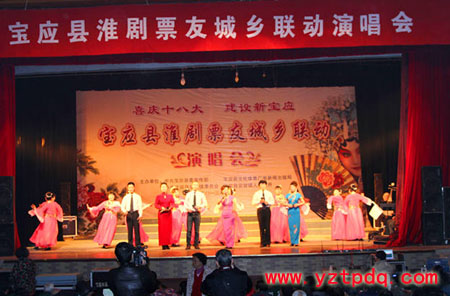 揚州寶應素有淮劇之鄉(xiāng)的美譽?;磩≈杏袃纱罅髋?,即所謂東路藝術和西路藝術,其西路藝術就源于寶應。查一查新編《縣志》便可看到,一百多年來,許多民間藝術家,在這塊園地中不輟耕耘,為淮劇的孕育、催生和成長、革新灌注了心血和汗水。也許因為是“鄉(xiāng)音”,寶應人不但愛聽淮劇,也愛唱淮劇,尤其酷愛原汁原味的老淮調(diào)。