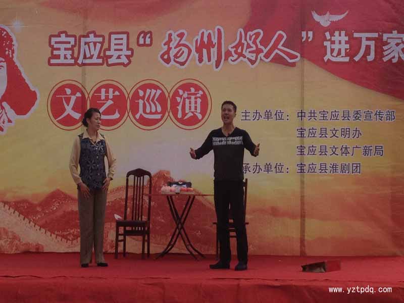 2014年10月16日,由寶應(yīng)縣委宣傳部、文明辦、文體廣新局主辦,縣淮劇團(tuán)承辦的寶應(yīng)縣“揚(yáng)州好人”進(jìn)萬(wàn)家文藝巡演走進(jìn)柳堡,分別在柳堡鎮(zhèn)鄭渡集鎮(zhèn)、蘆村集鎮(zhèn)演出了以宣傳寶應(yīng)“揚(yáng)州好人”事跡為主題的淮劇節(jié)目。