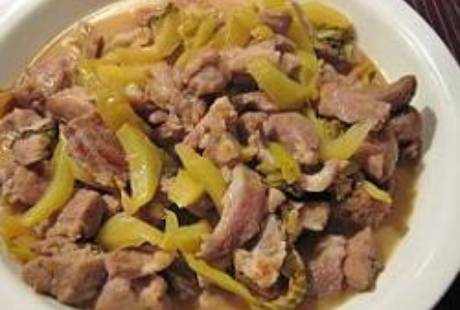 記得小時候,咸菜是家里招待客人的一道主菜。有客自遠方來,母親從壇子里抓出一小碗咸菜,用清水一洗,將五花肉切成很小的肉片。添柴燒旺火,把肉片入鍋爆炒,很快香氣撲鼻。再將咸菜倒入翻炒,須臾,放蔥、蒜、辣椒,蓋上鍋蓋,少許時間揭開,咸菜炒五花肉,香氣陣陣,看著就眼饞了。難怪家鄉(xiāng)人說“咸菜炒五花肉,神仙也來湊”。咸菜除了炒五花肉,還和很多食物都是絕配。咸菜炒雞蛋、咸菜炒小藕、咸菜燒豆腐、咸菜慈姑湯等等。收了新小麥,磨些面粉,這時母親就會抓點咸菜切點蔥花和面做餅。我站在鍋臺前,口水淌淌的。母親用鍋鏟子從鍋里給我鏟一塊,我手捧咸菜麥面餅,吹掉熱氣,小心翼翼地咬一口,真香啊……