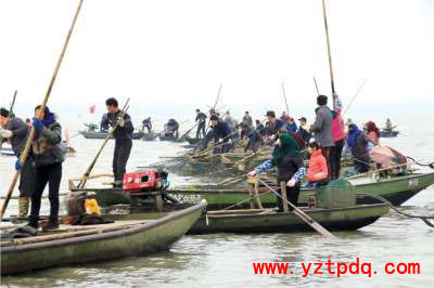 “沿湖村上一回舉行大范圍的冬捕‘殺圍’節(jié)是50年前了。”黃蘭玉介紹,他16歲開始罱魚,父親負(fù)責(zé)撐船,他負(fù)責(zé)罱,一船能罱上幾十條魚。“選擇冬天罱魚是因?yàn)樗坏?,今天的邵伯湖水位大?0厘米,因?yàn)榕吕?,魚躲在水草里面,罱子放到水草里很容易罱到。別看漁民手中的罱簡(jiǎn)陋,可這種捕魚方式很有道理,通過罱將水弄渾,魚兒就一點(diǎn)點(diǎn)往中間聚,到最后幾罱往往都會(huì)出大魚。”